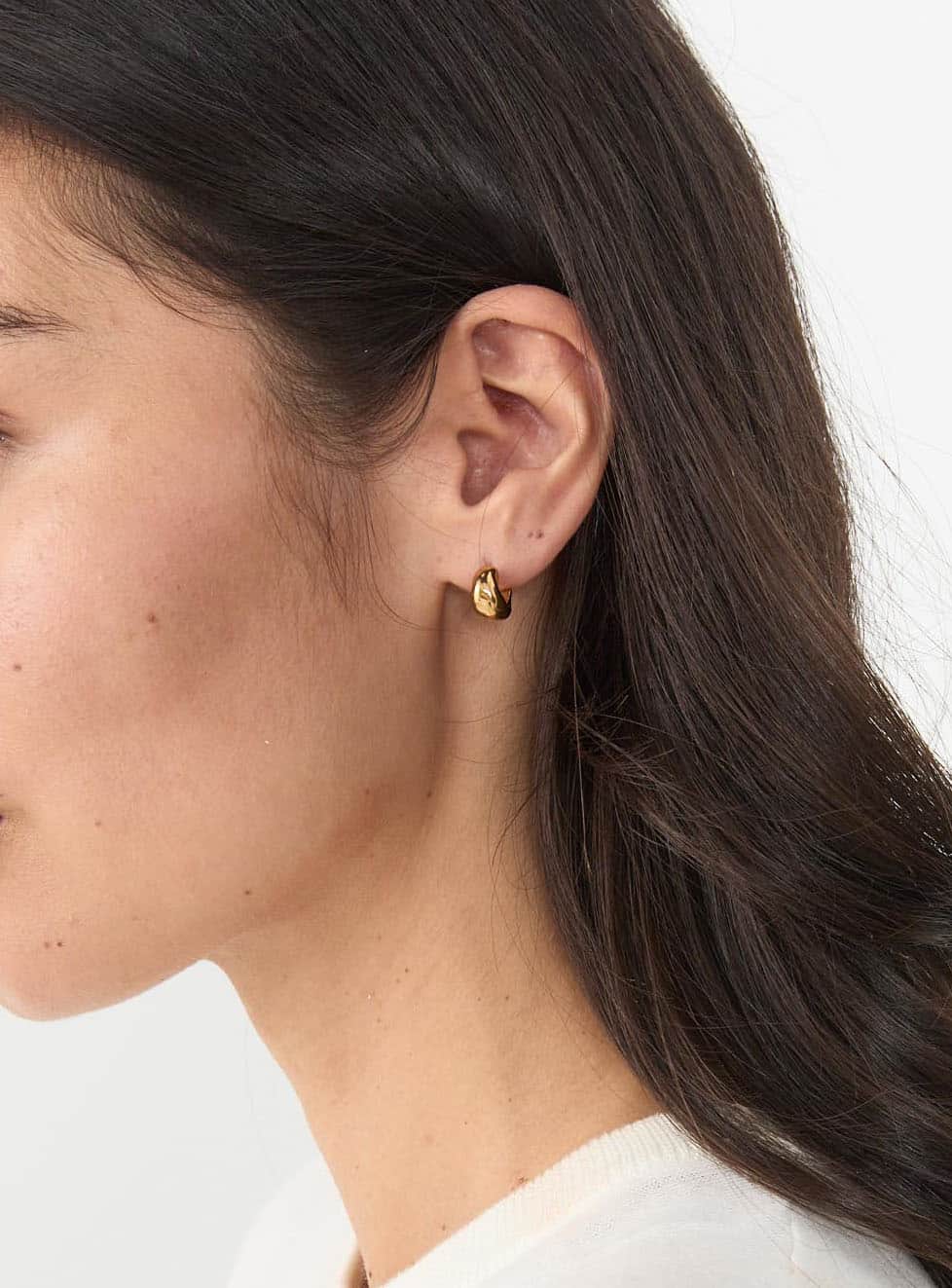 This timelessness underscores a key part of Lang’s vision for AGMES. “I like to think that each piece is going into someone’s life, to a home,” she explains. Lang chooses to work with recycled gold, silver and gold vermeil, with sustainable design and production at the core of the brand. Pieces are “made from high-quality materials without being flashy, and lightweight for a sense of ease every day.” As she was creating AGMES, she was deliberate about building her business slowly and staying close enough to the pieces that she wouldn’t overproduce.