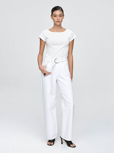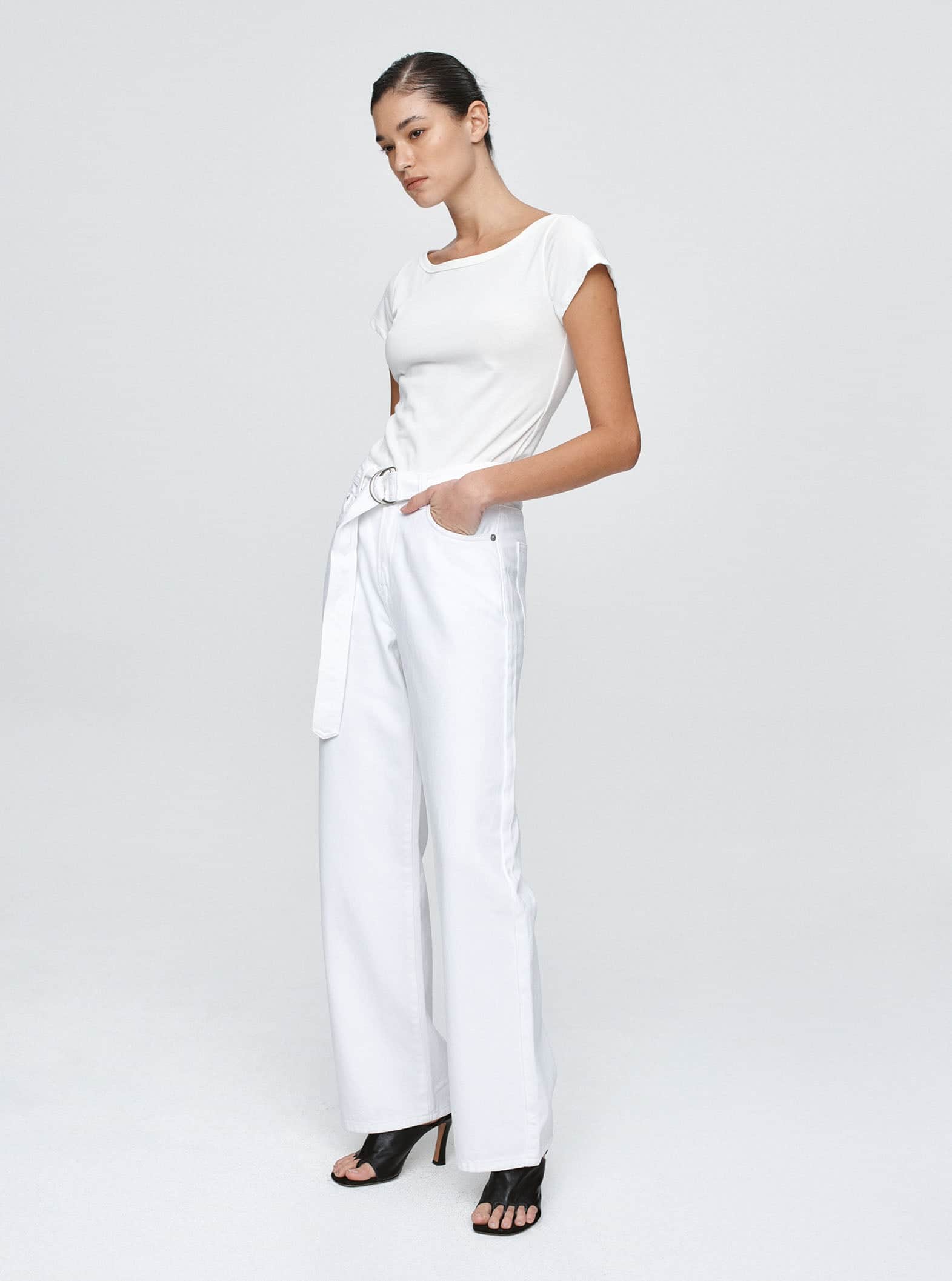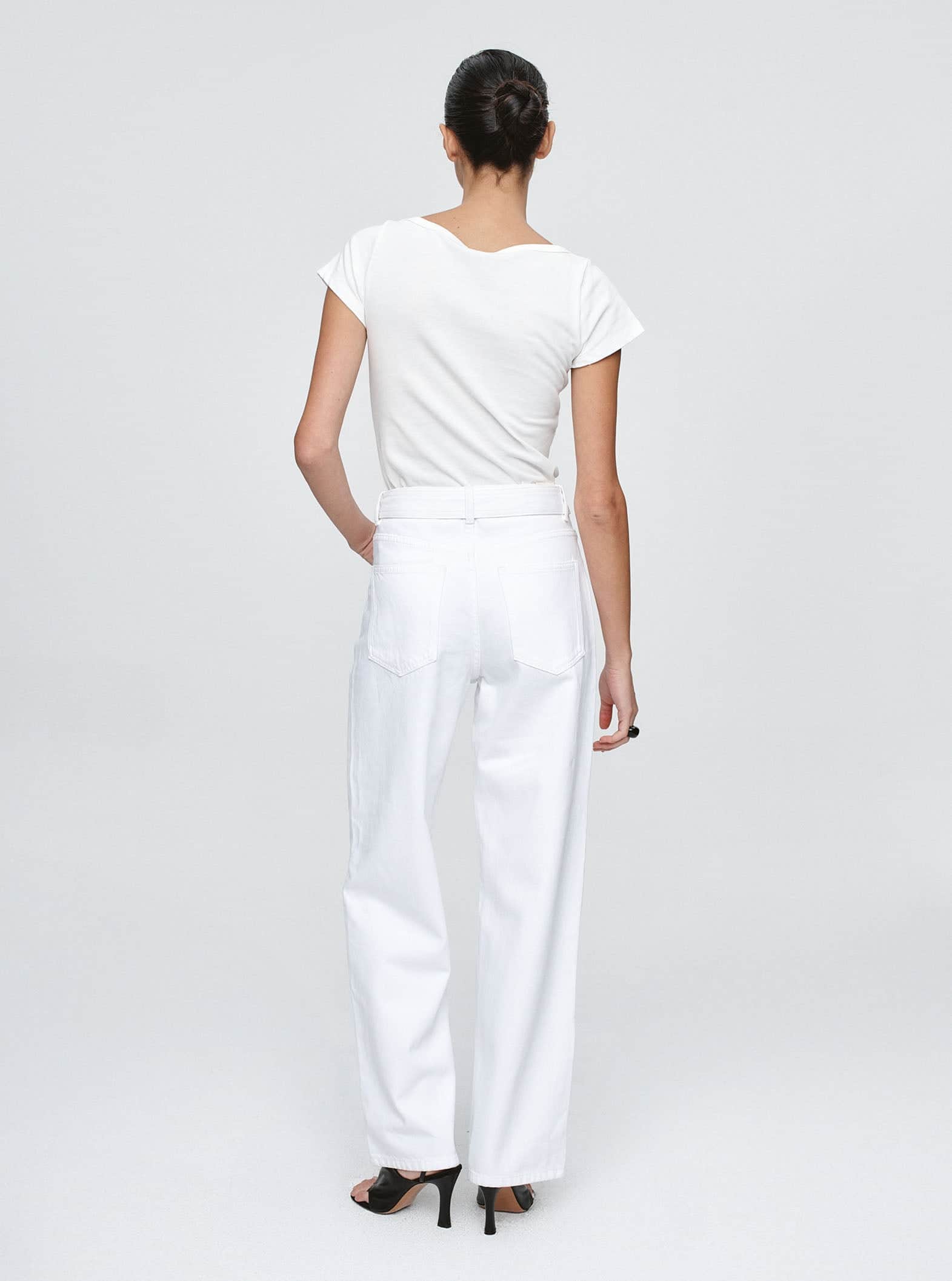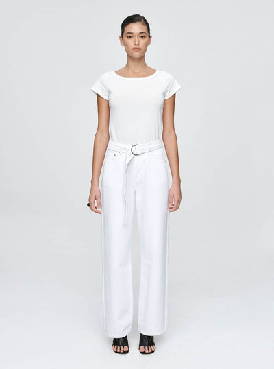 An iteration of the classic Wide Leg Jean, now with a removable belt. Crafted from 100% organic cotton denim featuring a high-rise waist and a wide-leg silhouette, offering a structured yet relaxed fit that flatters and elongates the legs. Classic details like a button fly, belt loops, and five-pockets.