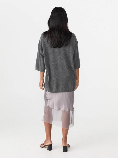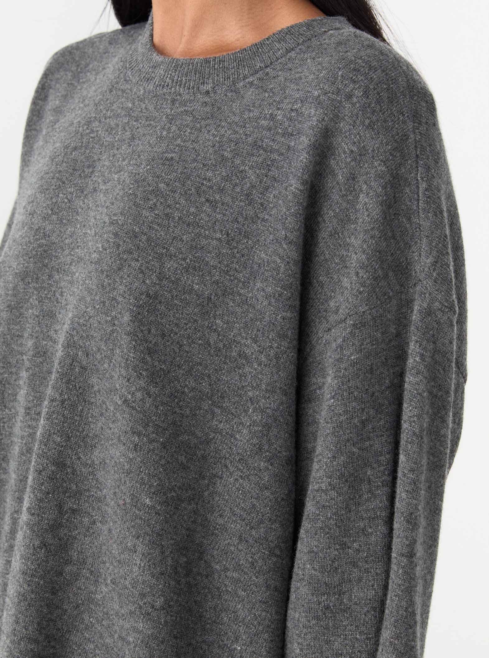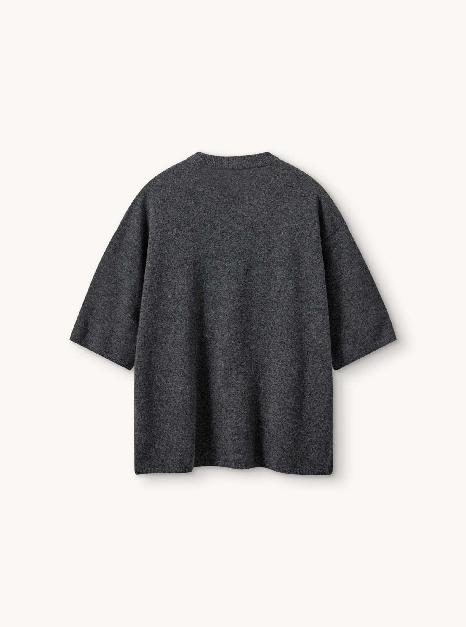 Its relaxed cut includes dropped shoulders and a gently elongated silhouette, presenting a modern, refined approach to everyday dressing. The soft grey melange shade adds nuance and timeless versatility, making it an ideal complement to elegant layers or minimalist casualwear.