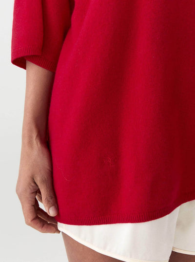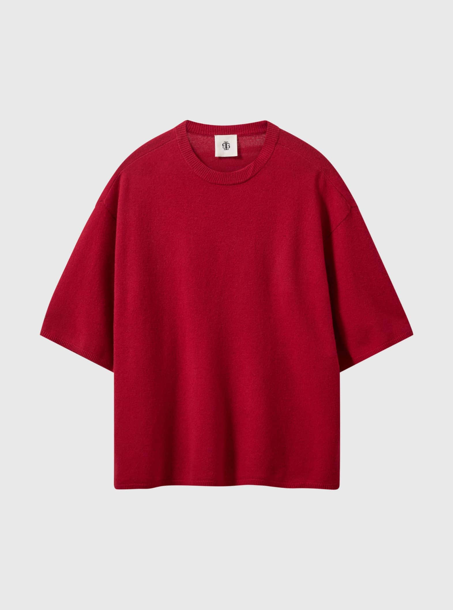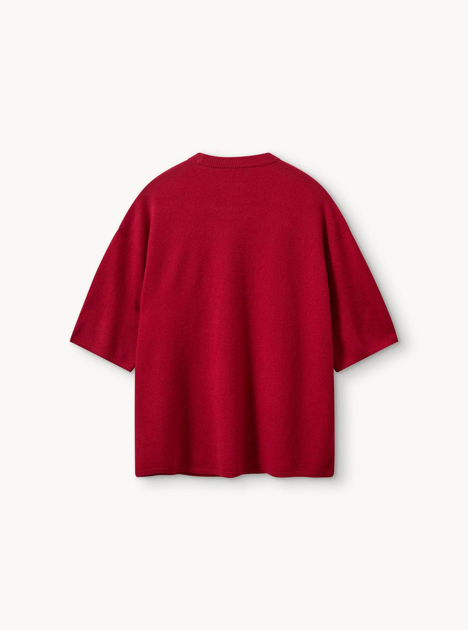 Its relaxed cut includes dropped shoulders and a gently elongated silhouette, presenting a modern, refined approach to everyday dressing. The warm red hue adds nuance and timeless versatility, making it an ideal complement to elegant layers or minimalist casualwear.