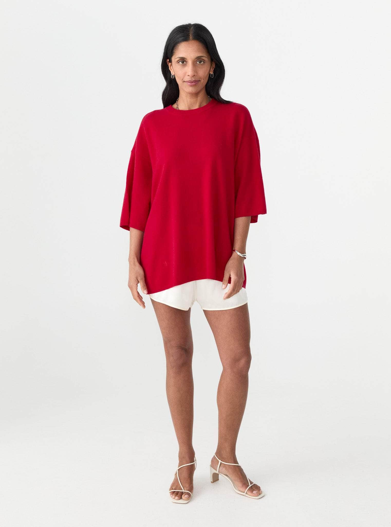 Casual meets considered in this thoughtfully designed tee. The Como Oversized Tee brings effortless ease to a well-curated wardrobe. Knit from a sumptuous 95% Wool and 5% Cashmere blend, it drapes softly, offering both subtle warmth and a beautifully tailored drape.