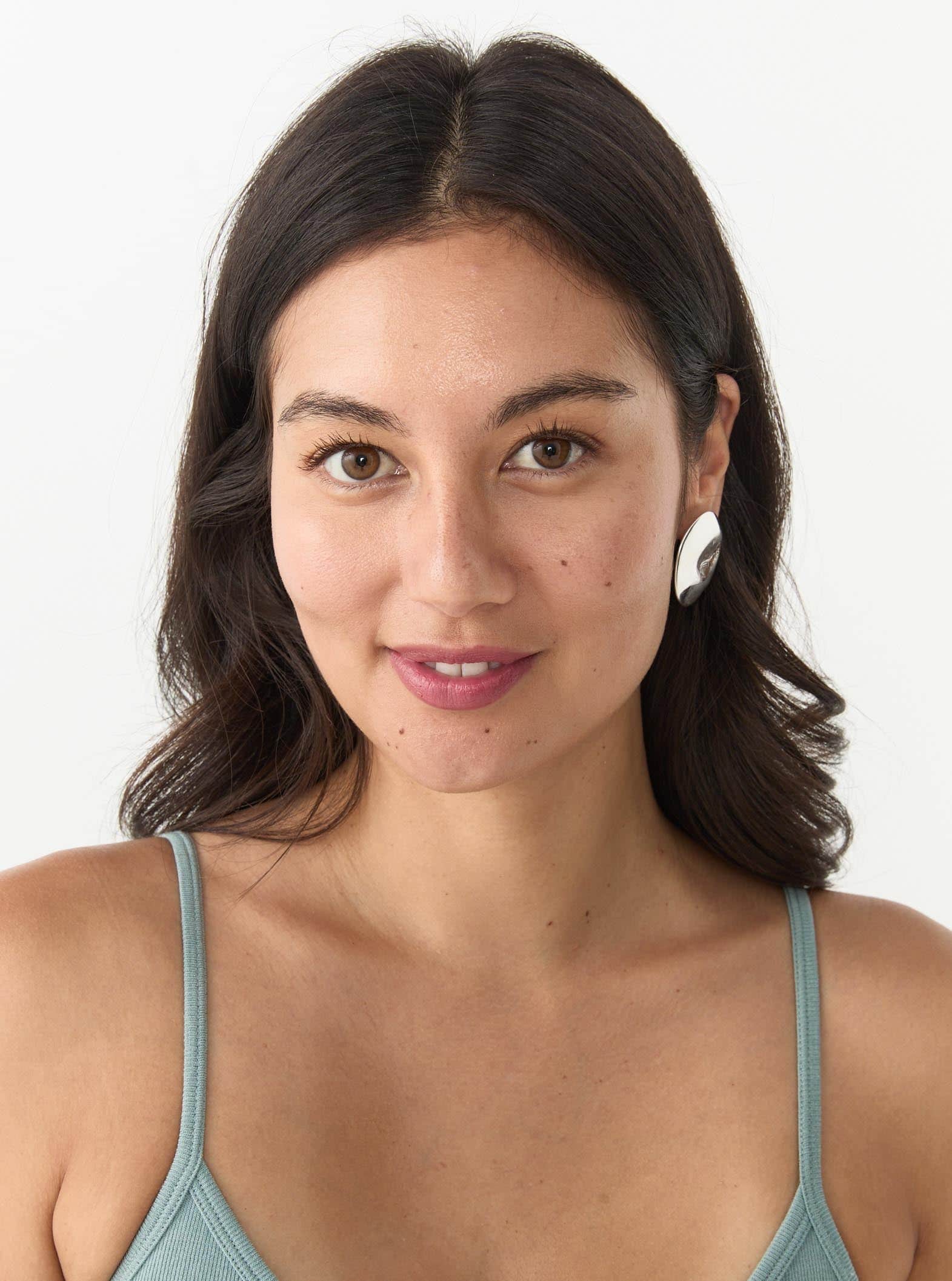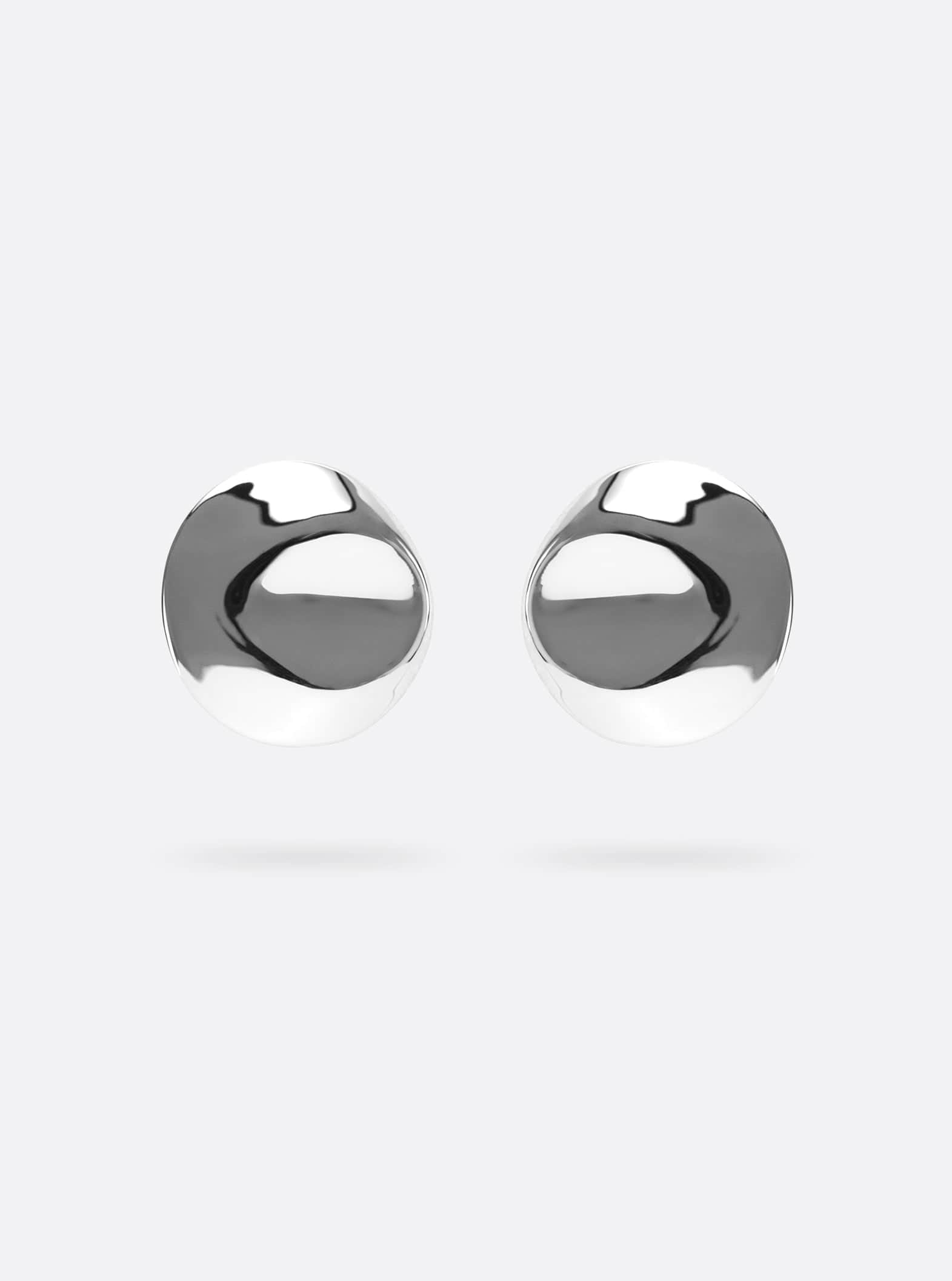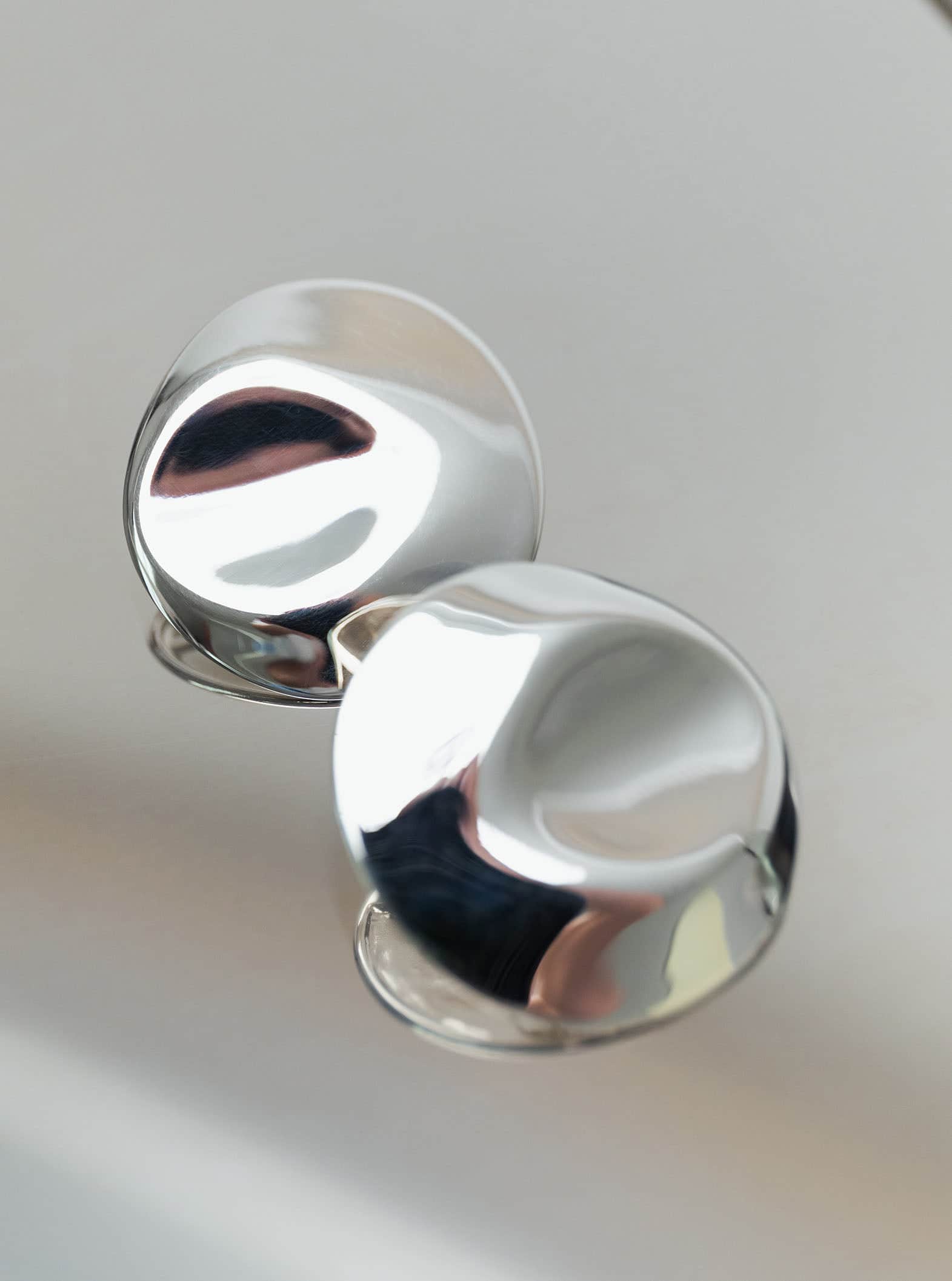A lightweight statement earring with deliberate dented imperfection. Mirror Finish. Wear on any occasion—or casually with jeans and a t-shirt.
