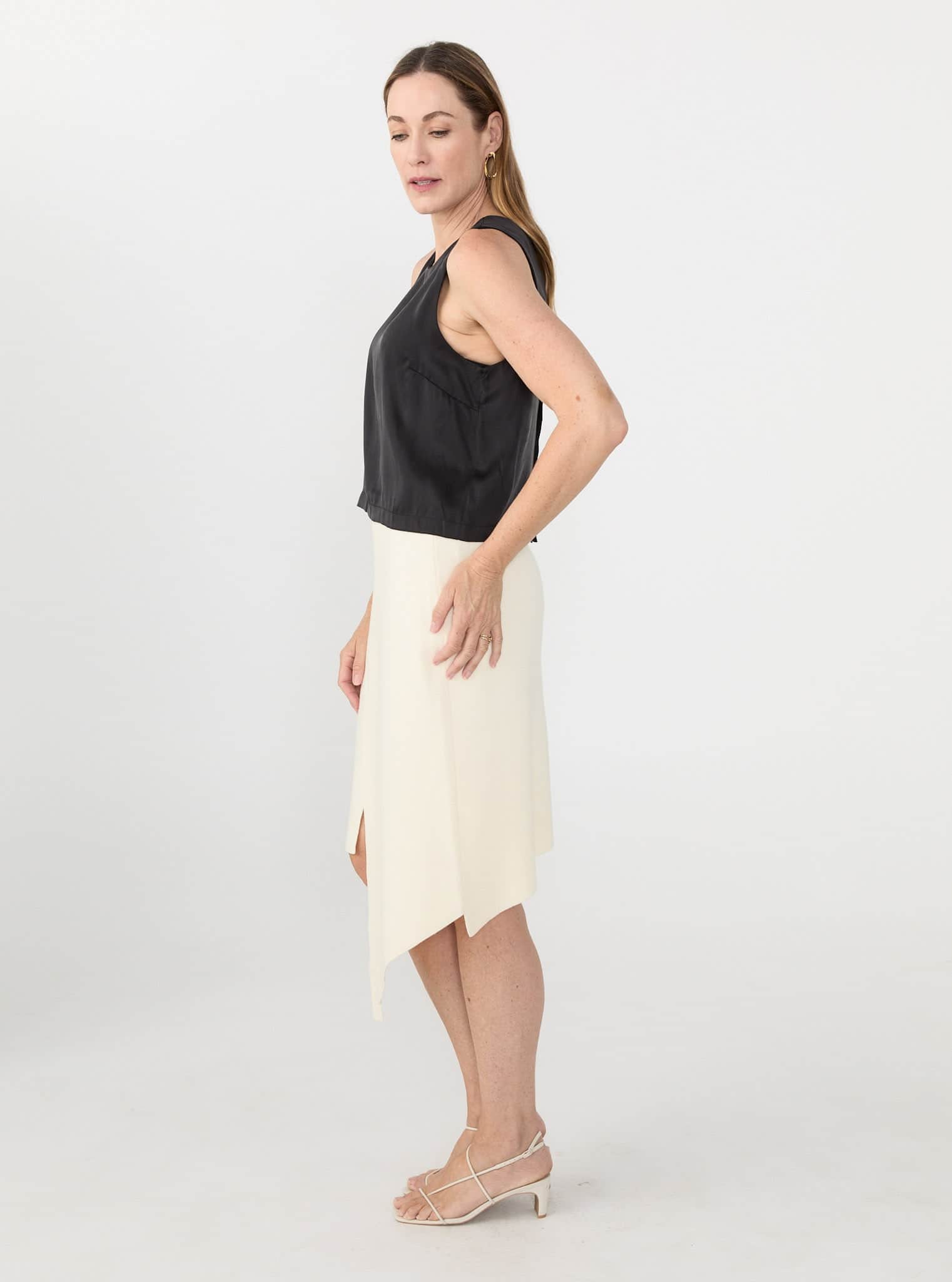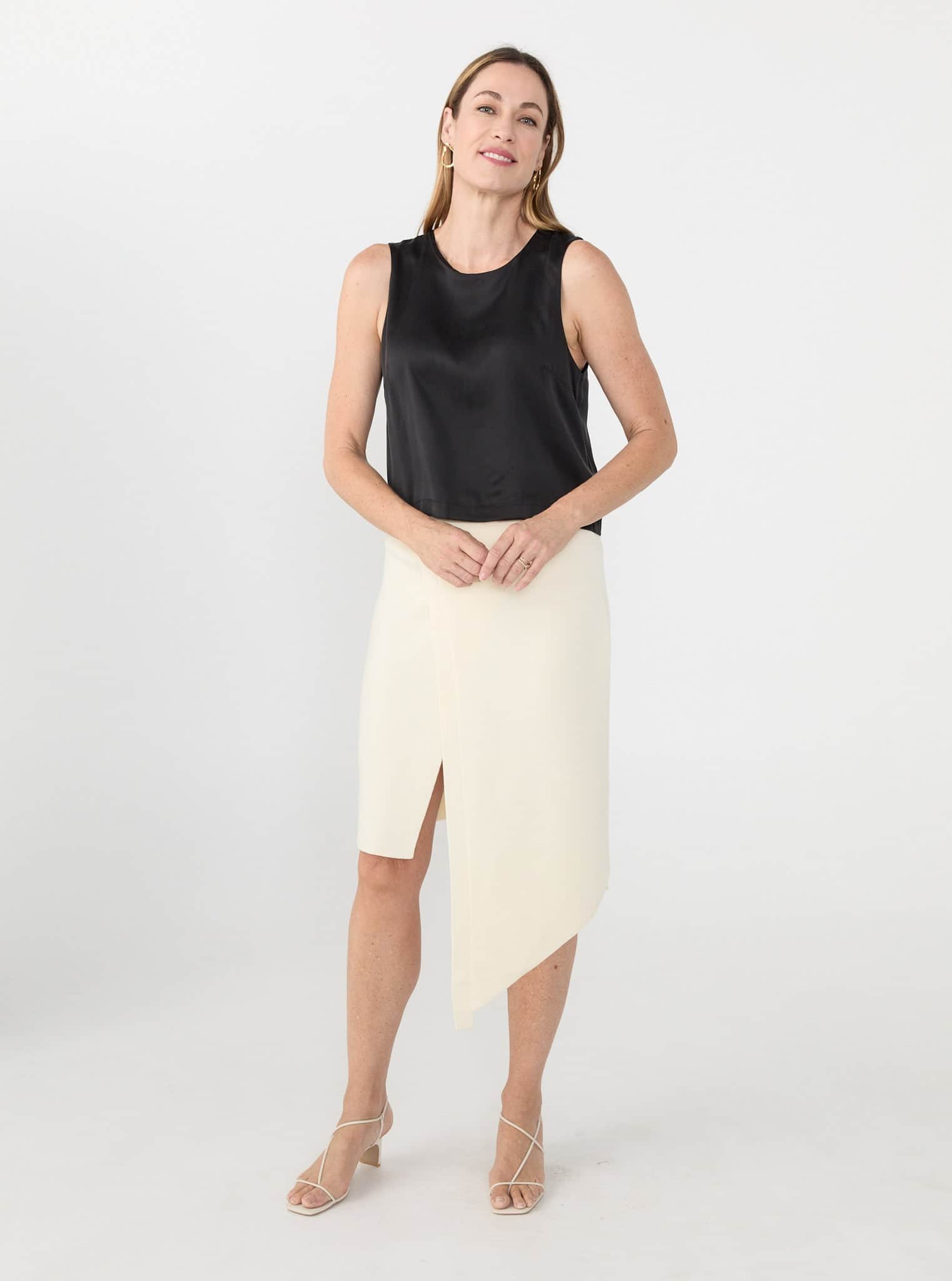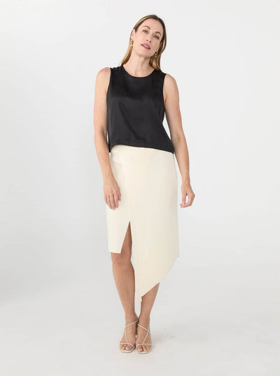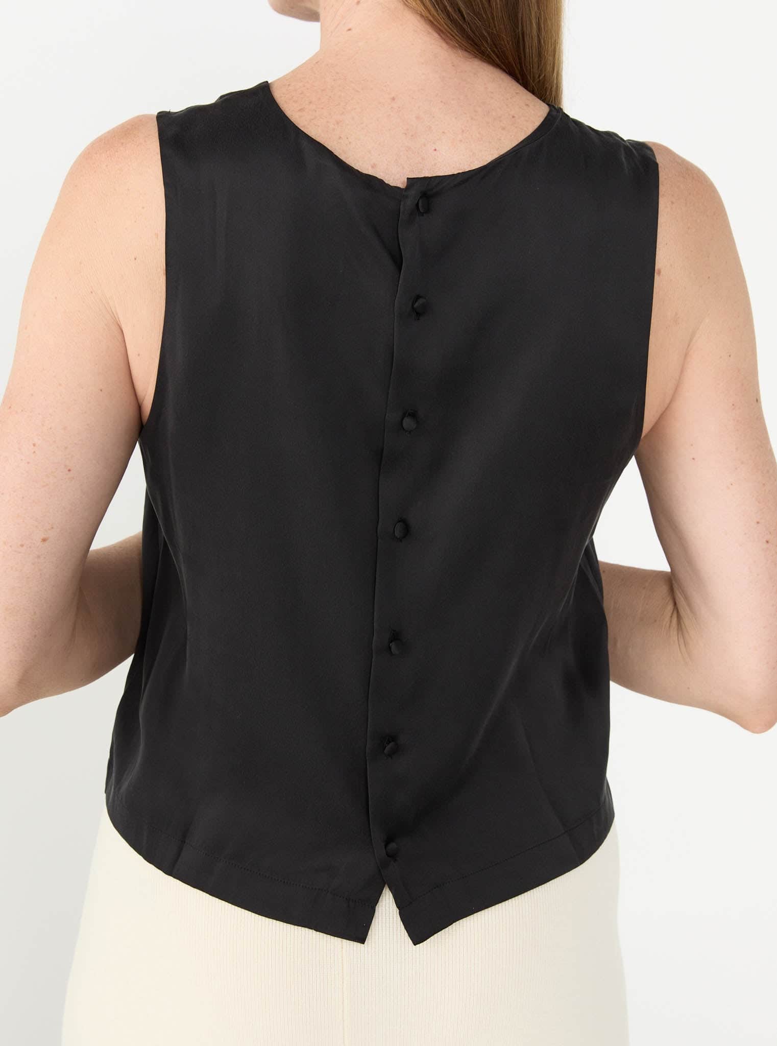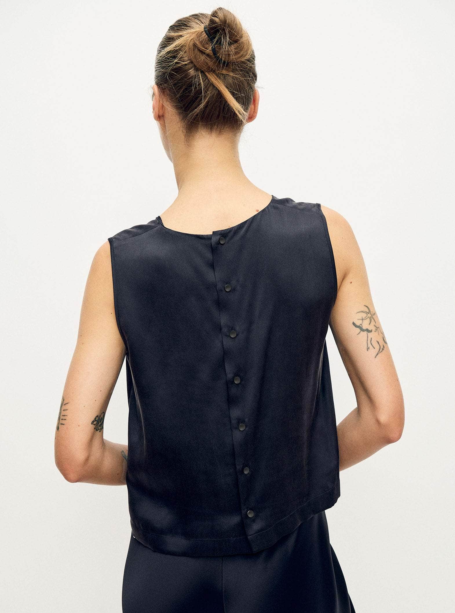 The Elena Top is crafted from 100% silk; sandwashed for a soft, matte feel. Designed with a round neckline, subtle bust darts, and a button-down back, it offers an elegant silhouette with minimal effort.