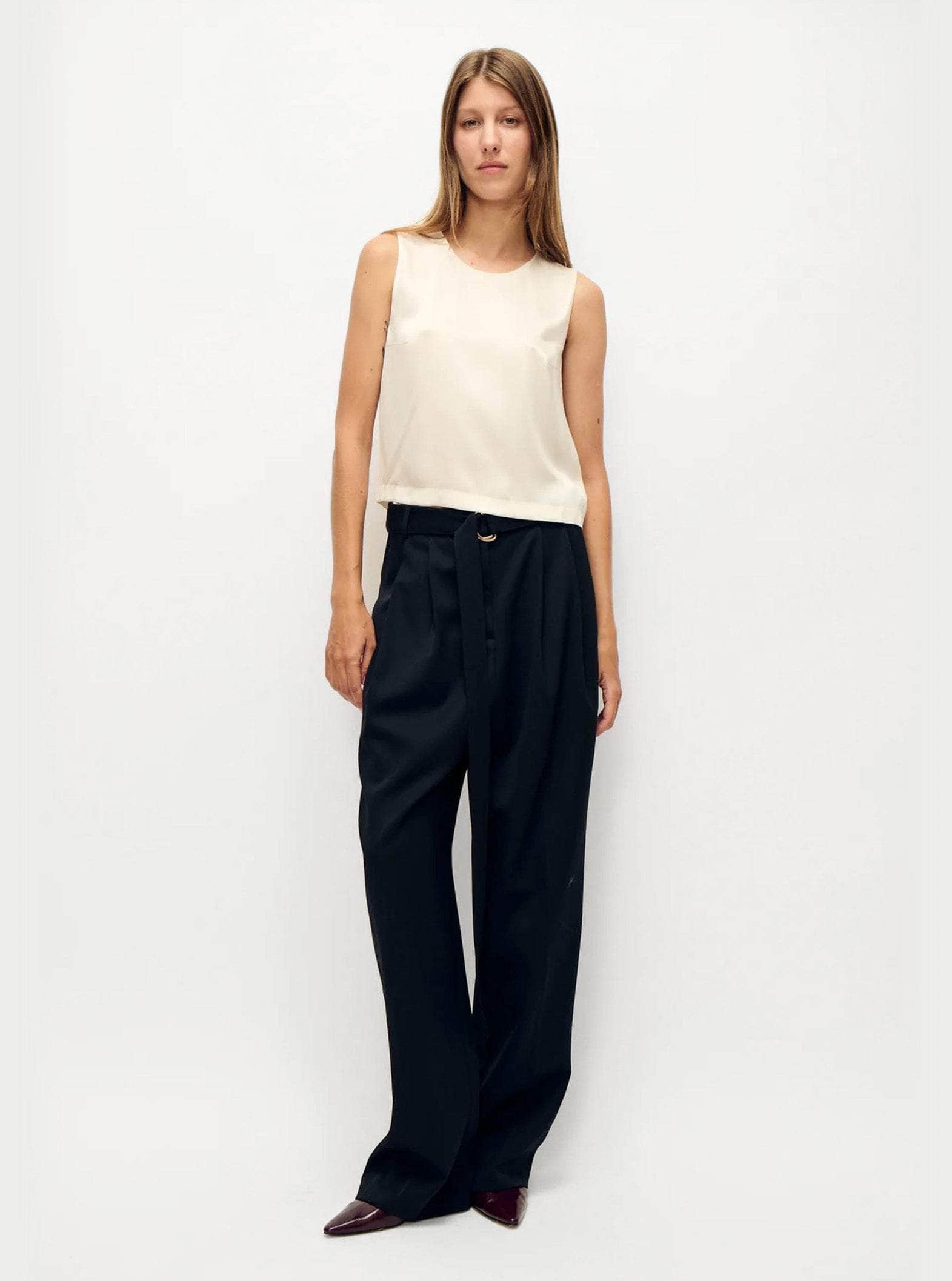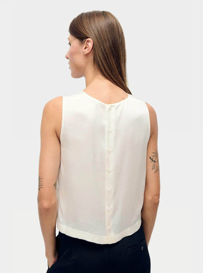 The Elena Top is crafted from 100% silk; sandwashed for a soft, matte feel. Designed with a round neckline, subtle bust darts, and a button-down back, it offers an elegant silhouette with minimal effort.