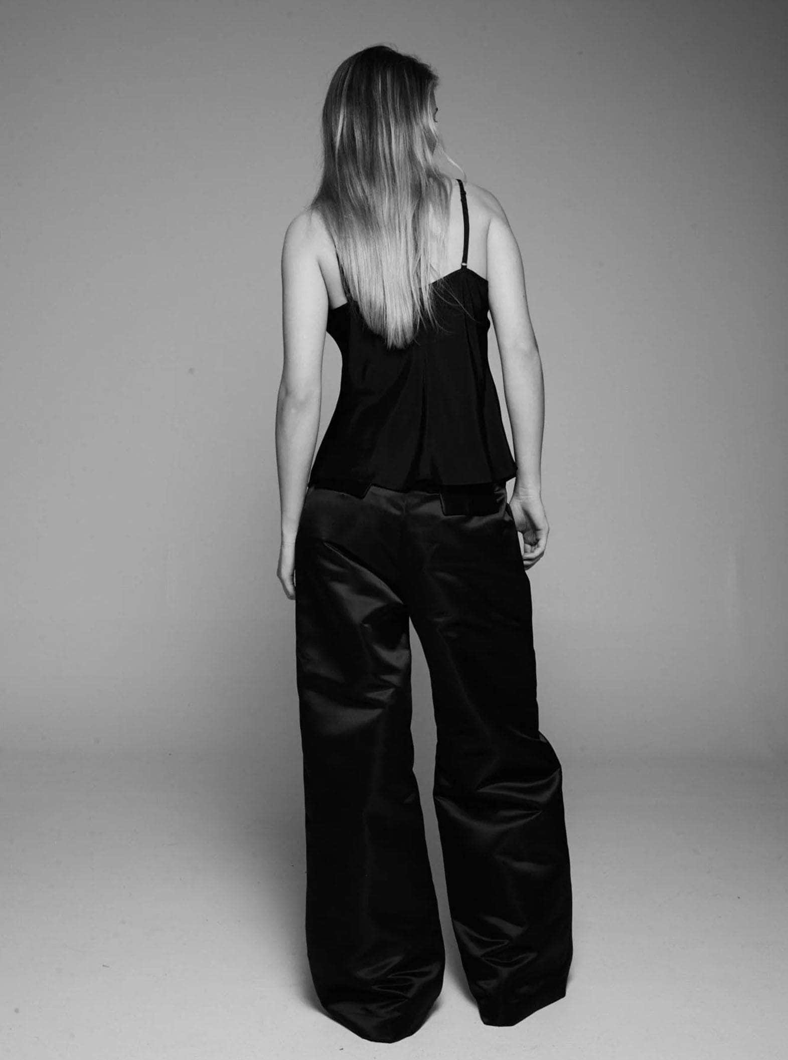 This camisole is made from a bias-cut black viscose, trimmed in scalloped ivory lace. Inspired by vintage lingerie, this cami has adjustable straps and just the right amount of romance to wear day or night.