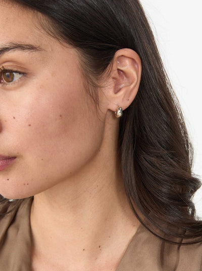 A softly rounded hoop that hugs the earlobe. Crafted in either recycled Sterling Silver or 18k Gold Vermeil.