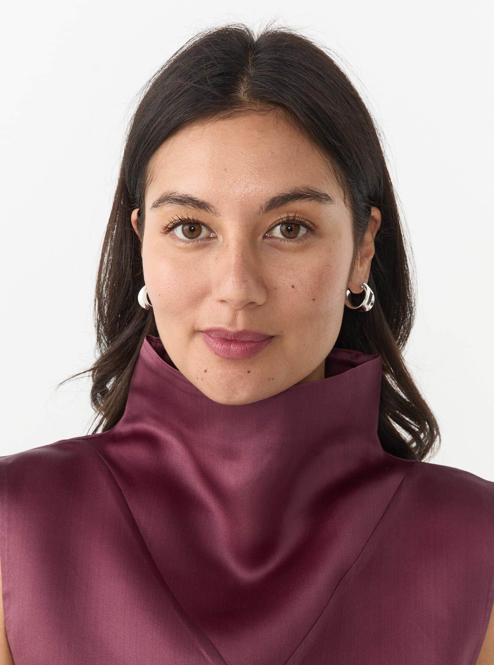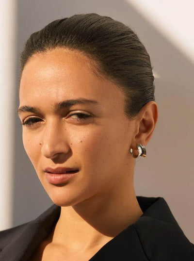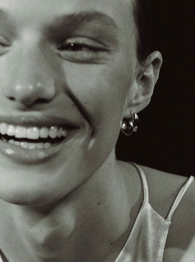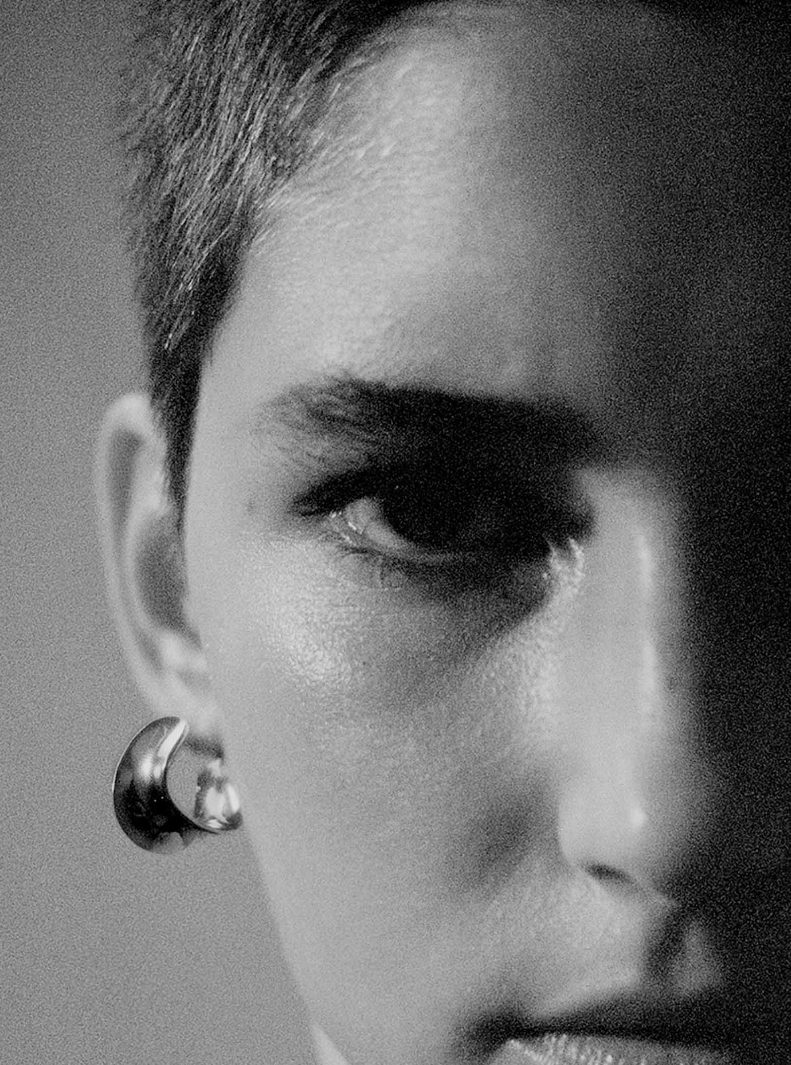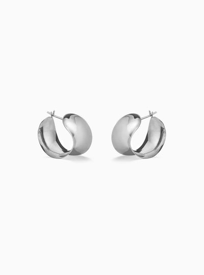 A sculptural concave hoop, softly contoured in either recycled Sterling Silver or 18k Gold Vermeil.
