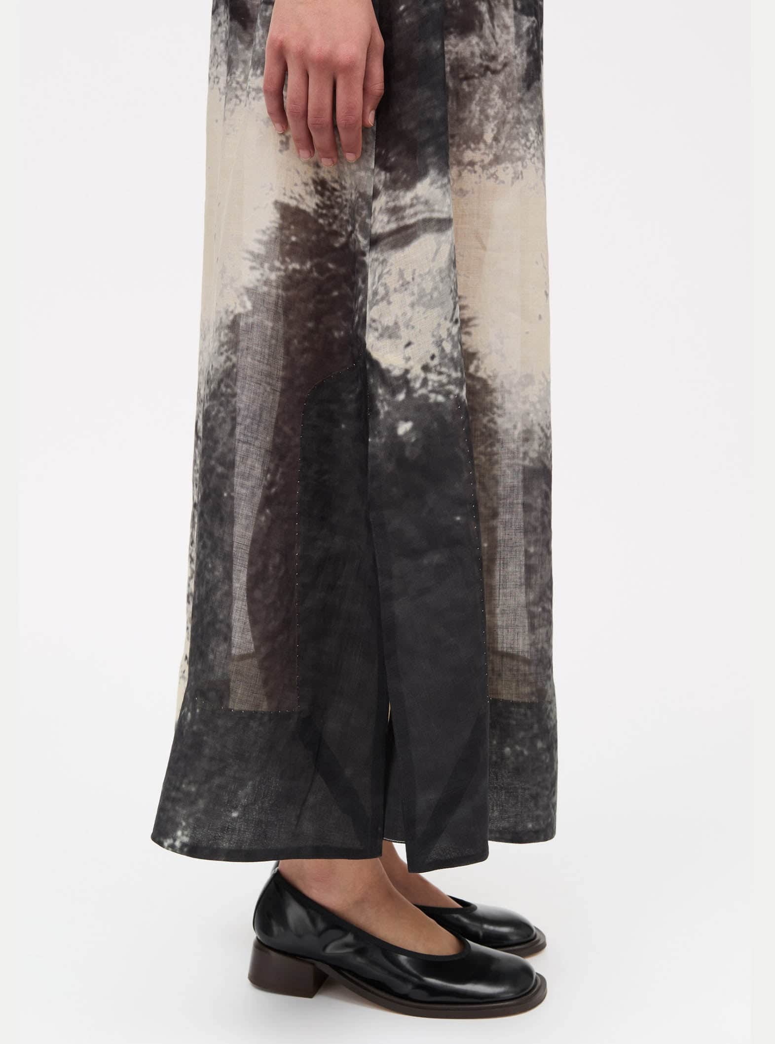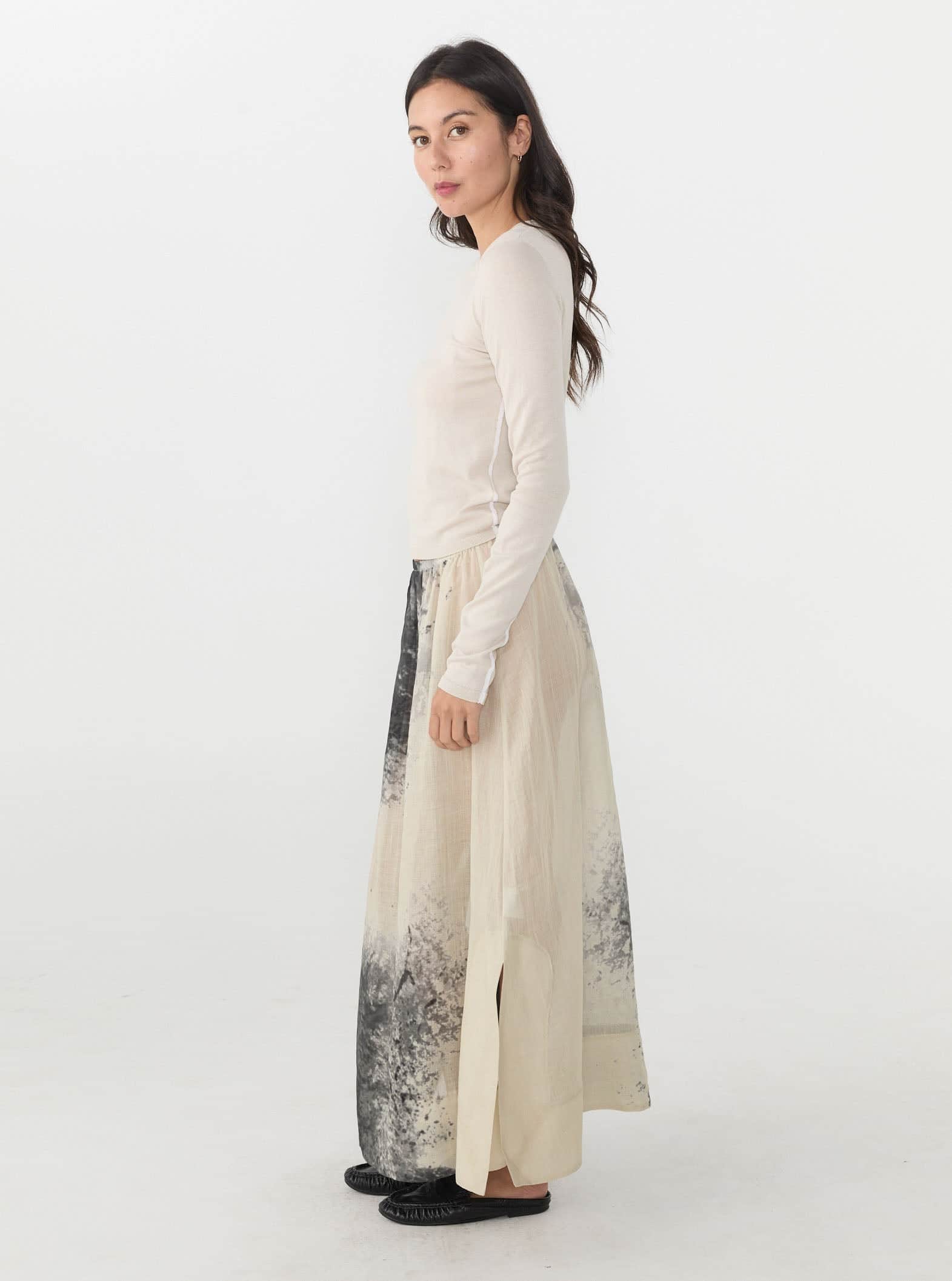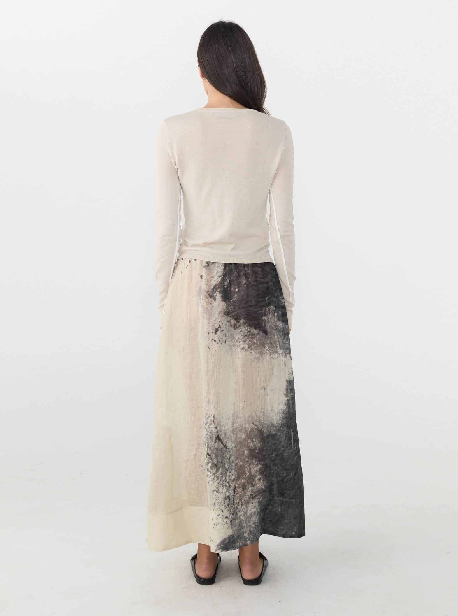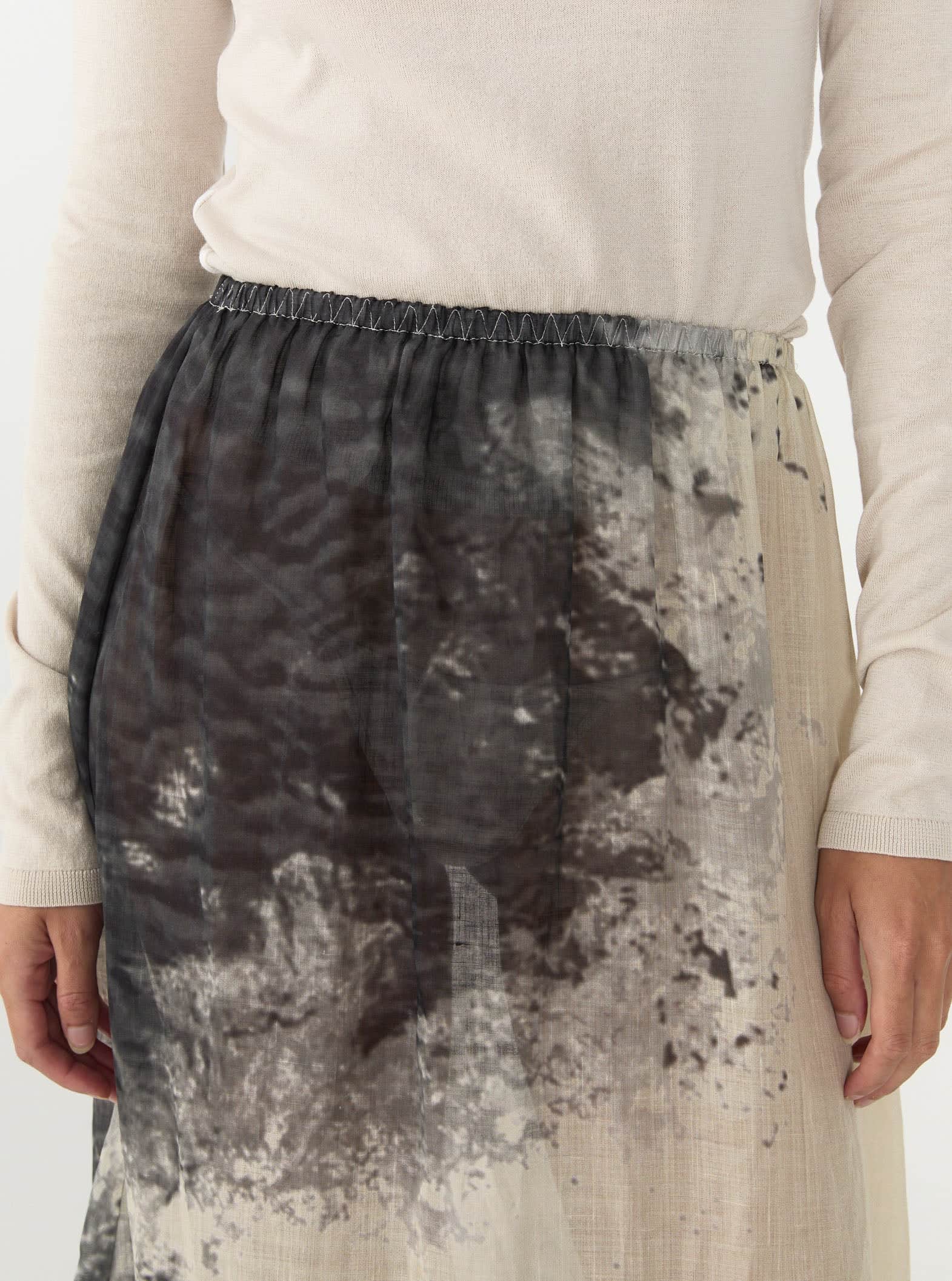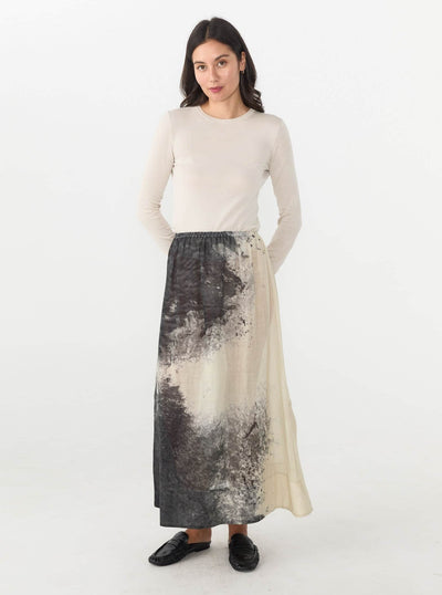 A delicate midi skirt crafted in 100% Ramie; a natural and renewable fibre similar to Linen. With an elasticated waistband, small side slits and a seasonal 'dust blow' print, the Nellie skirt adds character to any outfit.