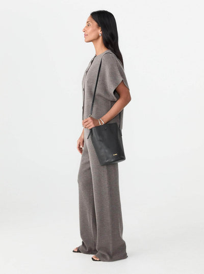 The Phoebe Bucket Bag is crafted from premium deer nappa leather and features a roomy interior, a drawstring closure and detachable, adjustable strap that allow you to wear it as a crossbody or shoulder bag.