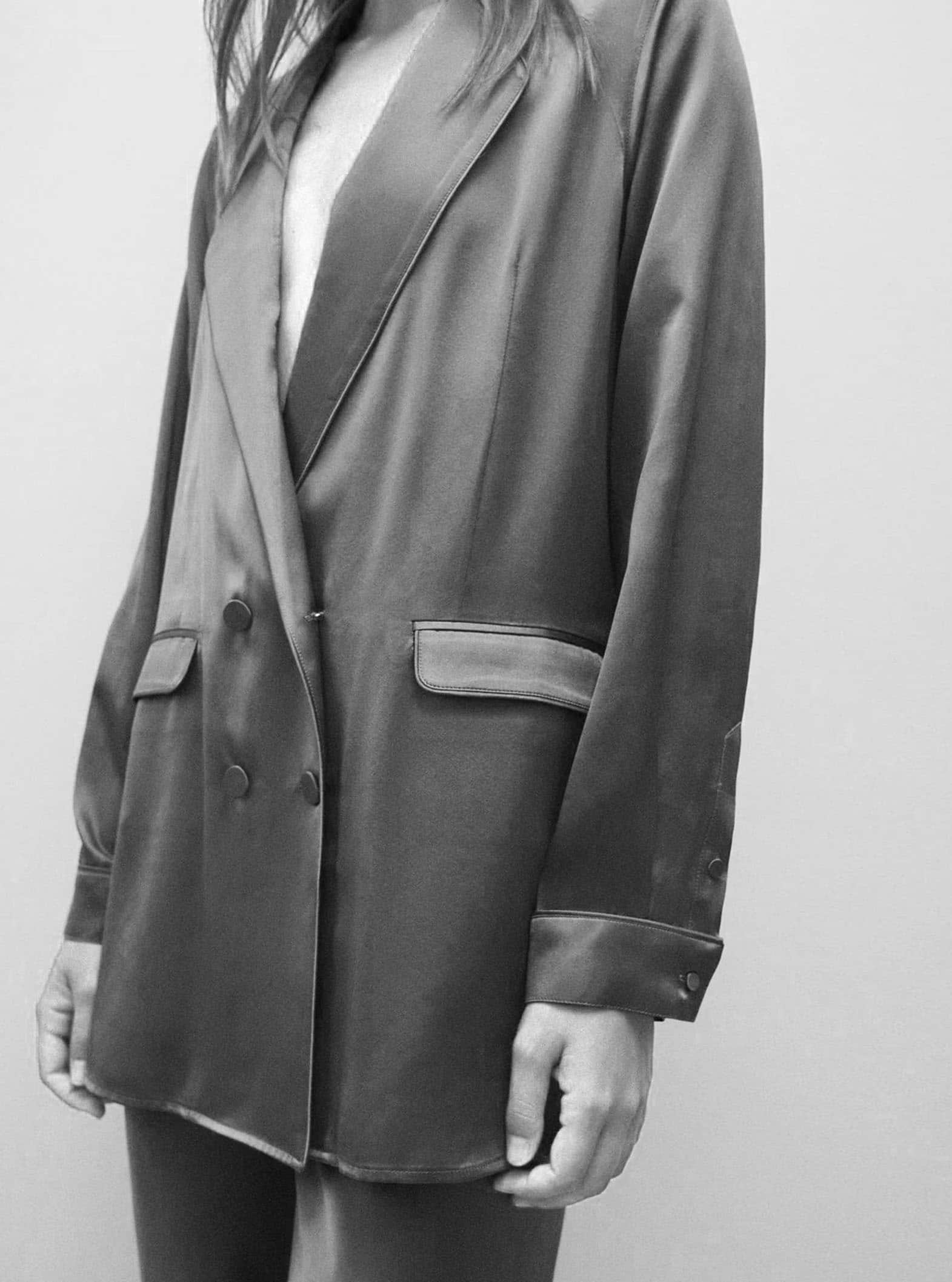 A relaxed take on the traditional tailored version, Silk Laundry's Relaxed Blazer has an unstructured, unlined silhouette that's perfect for dressing up any outfit. Cut from 100% silk, with a slightly heavier weight of 19 momme, it features a deep v-neckline, flap pockets and silk-covered buttons. Wear with the brand's bias cut silk pants for a contemporary, laidback approach to suiting.