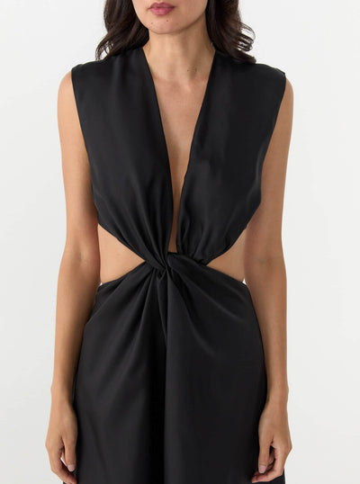 The Twist Maxi Dress is crafted from a lustrous silk twill. Exclusive to RIISE, we have collaborated with Esse Studios to create a limited run of this best-seller in a timeless colour. With a plunging neckline, twist front detailing and a cut-out back, it requires little more than some sparkling accessories.