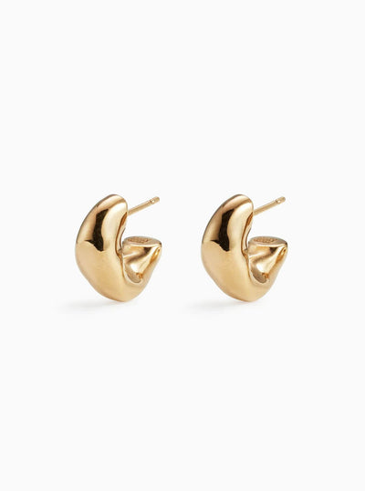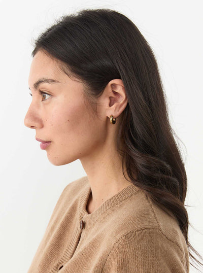 The perfect softly rounded hoop for everyday wear. Crafted in 18k Gold Vermeil. Available in the smaller Mini Dahlia Huggies.