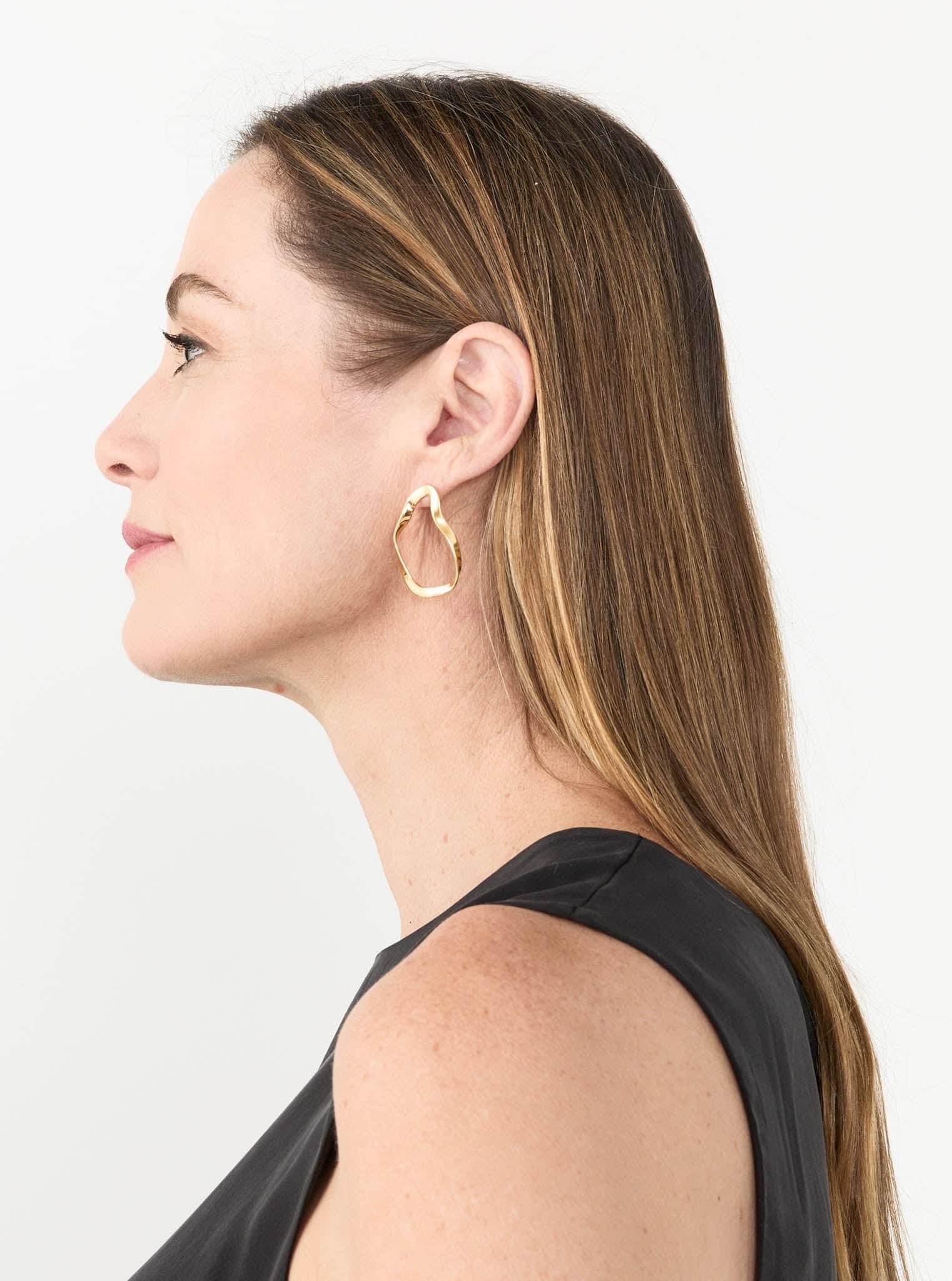 The AGMES Small Vera Earrings are a sculptural take on the classic hoop, handcrafted from recycled sterling silver or 18k gold vermeil. Their organic, irregular shape adds an element of fluidity to your look.