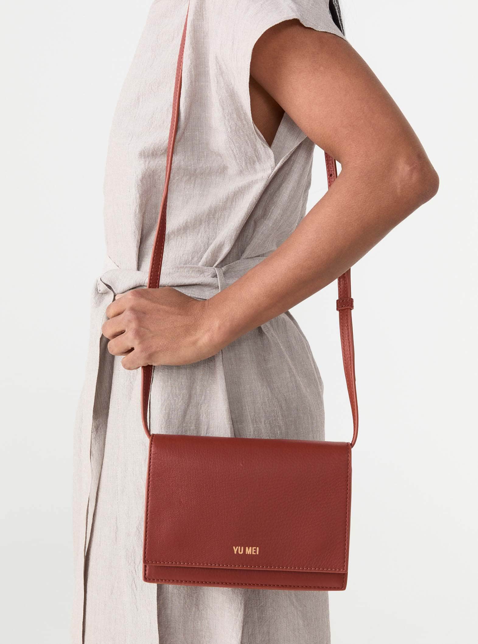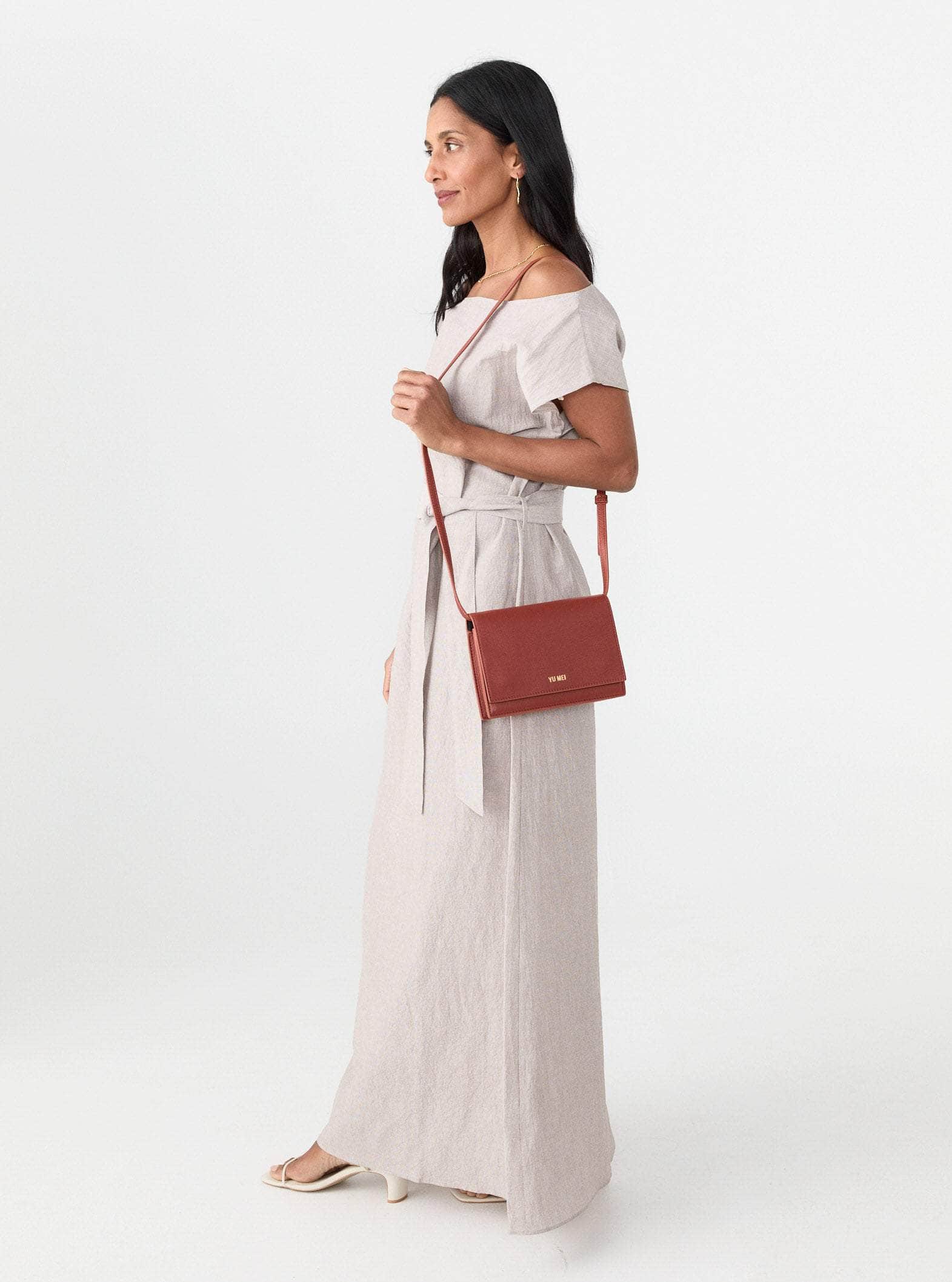 Refined and versatile, the Suki Multi-Strap Clutch is a must-have accessory for any occasion. Crafted from premium deer nappa leather in a refined dark spice hue, its structured silhouette is accented with gold-tone hardware for a sophisticated touch. Designed with practicality in mind, it features multiple detachable straps, allowing you to style it as a clutch, crossbody, or shoulder bag. With a spacious interior to keep your essentials organised, the Suki Multi-Strap Clutch seamlessly blends elegance and functionality, making it the perfect companion for both day and evening looks.