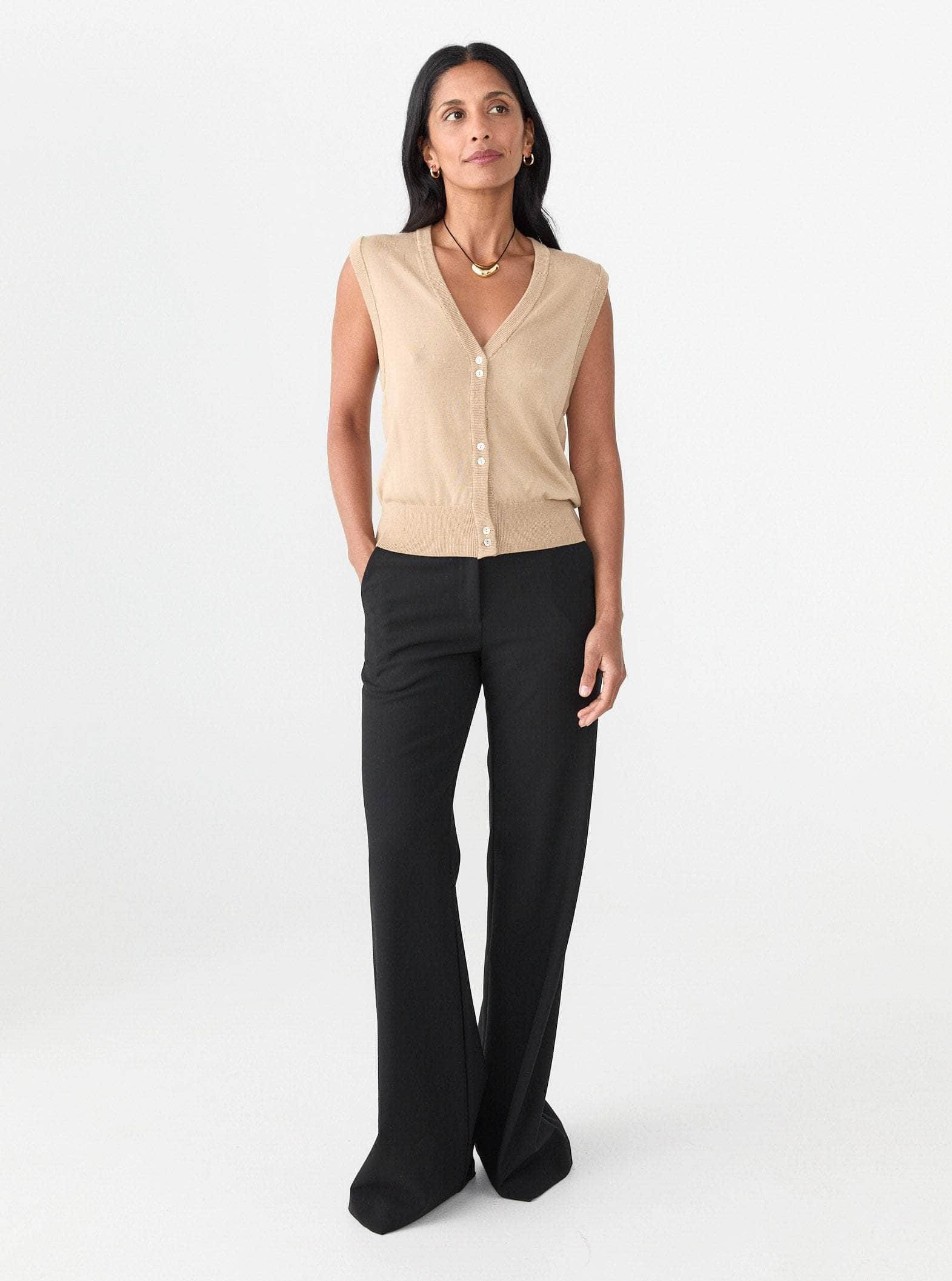 Matin's Signature Tailored Pant in Black are designed with a medium-rise fit and welted pockets, these trousers create an effortlessly structured look. The pant has a wide-leg cut, a tailored waistbandand functional side and back pockets.