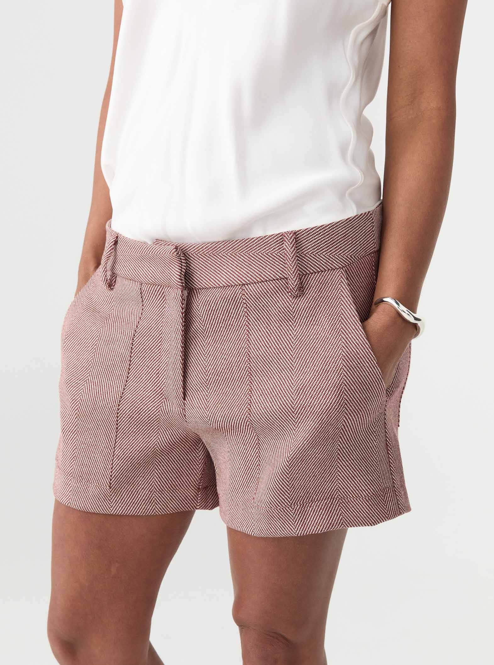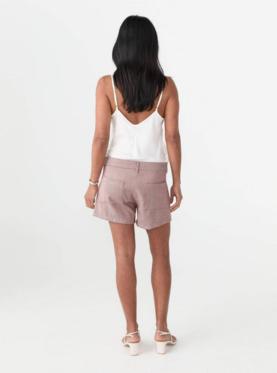 Offering a polished alternative to their signature tailored pants, Matin's Tailored Shorts in Carmine are the perfect way to turn office-wear into evening wear. Designed with a medium-rise fit and welted pockets, the tailored shorts create an effortlessly structured look. Functional side and back pockets make these shorts the ultimate warm weather staple, seamlessly transitioning from casual to elevated styling.