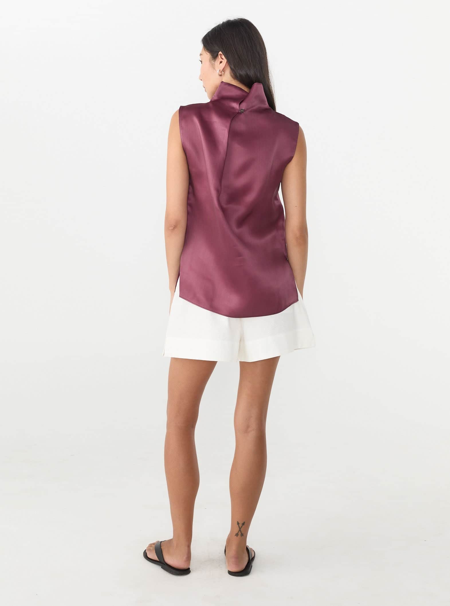 A minimalist sleeveless blouse crafted in luxurious 100% Silk with high neck. A timeless and exceptionally crafted piece from MKDT Studio's Pre-Spring '26 collection.
