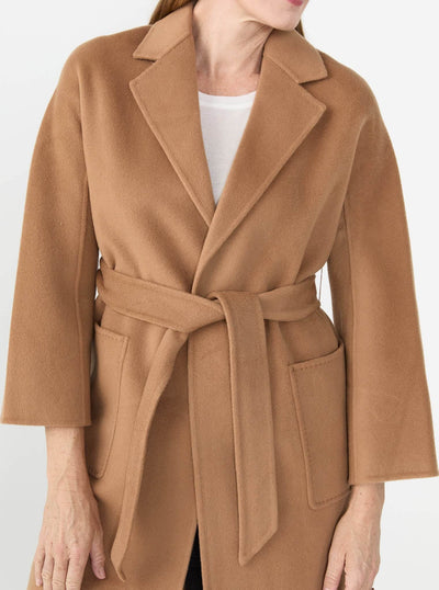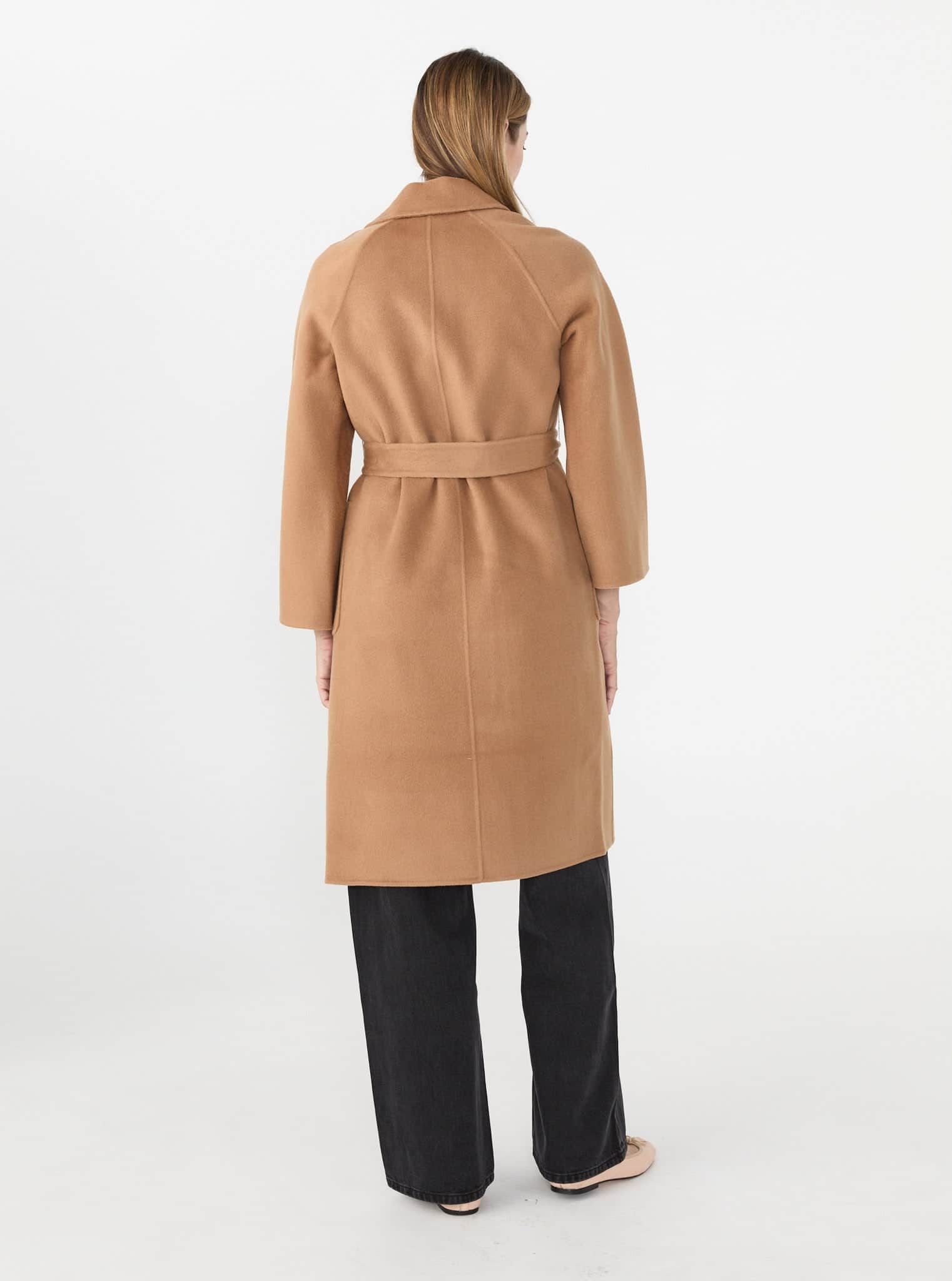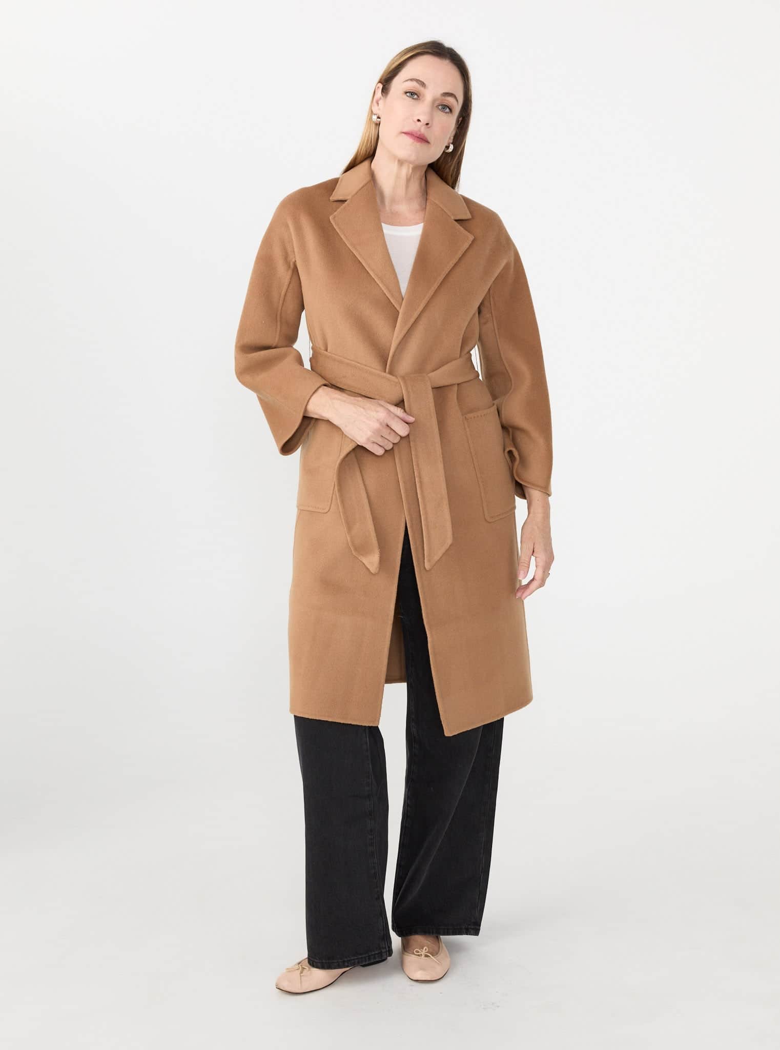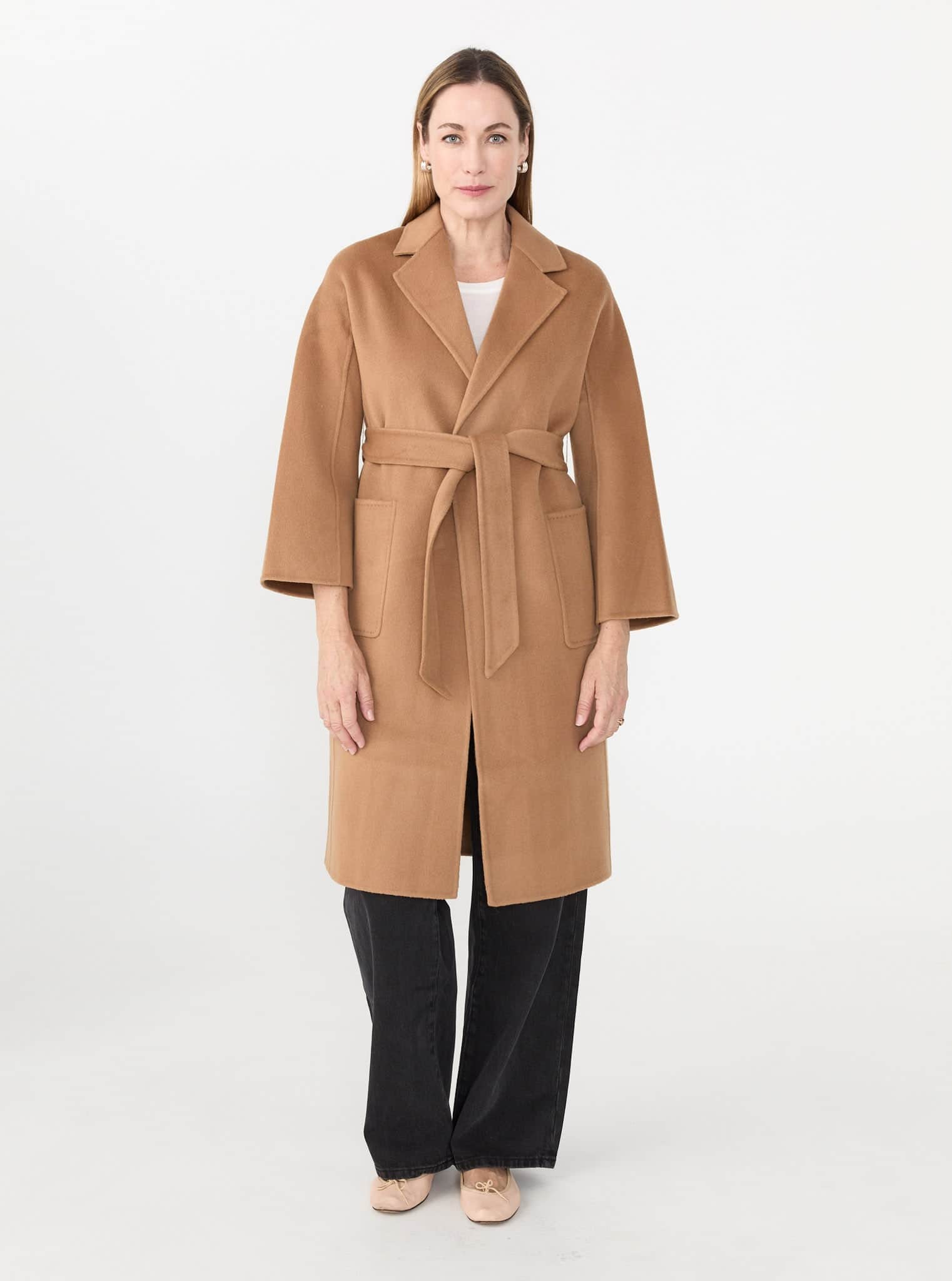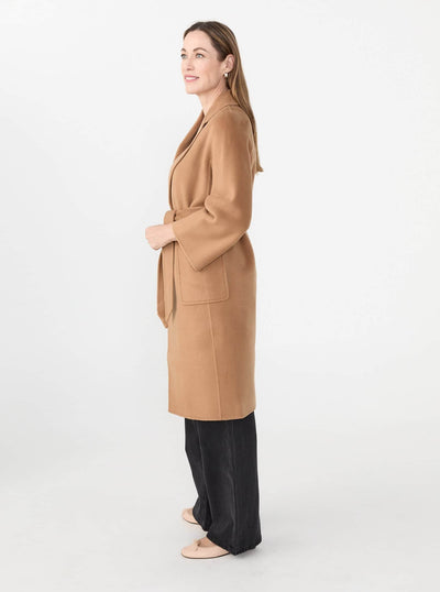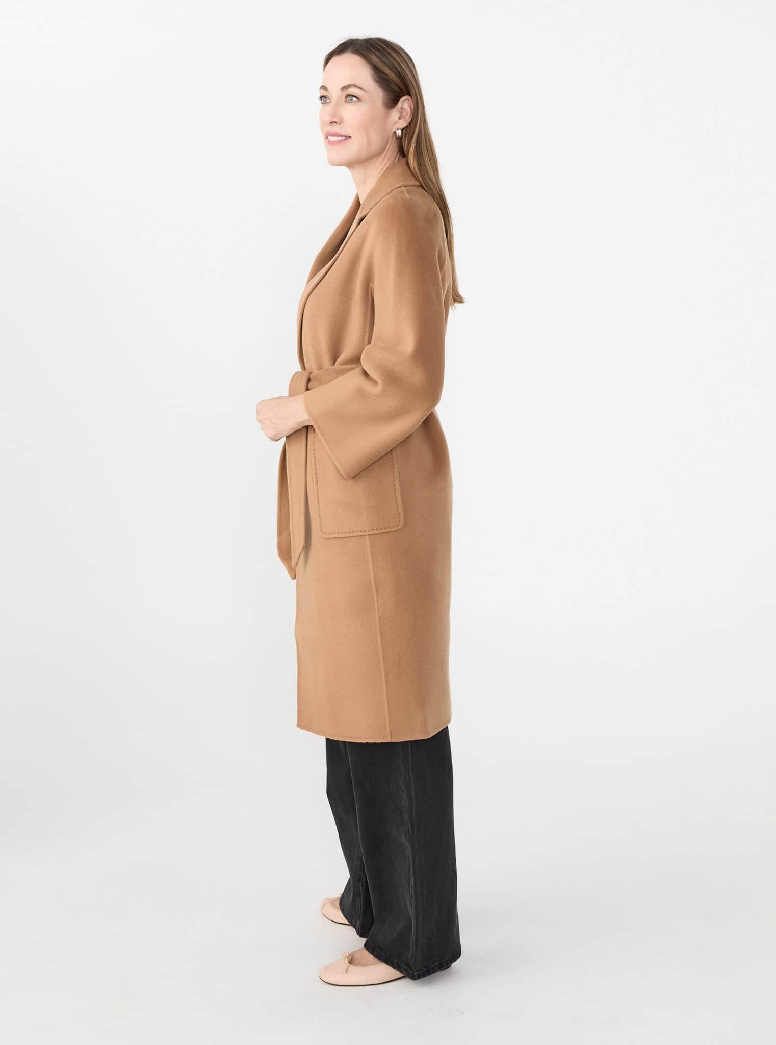 The Classic Coat is crafted from a soft Royal Cashmere, Merino wool blend, featuring a knee-length silhouette with patch pockets, complemented by a removable waist tie that allows for versatile styling. Wear it cinched for a defined shape or left open for a more relaxed look. The most timeless and elegant coat that will be a wardrobe hero for years to come.